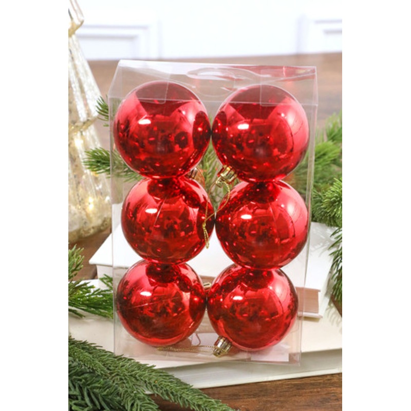 Inject some festive glamour into your classic red and gold Christmas decorations with our set of six 3-inch shiny red ball ornaments. Crafted with a gleaming scarlet finish that perfectly captures the joy and warmth of the season, these ornaments are desig