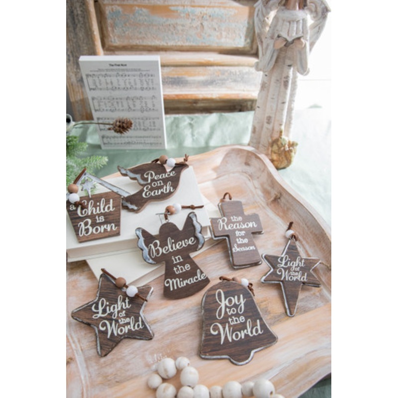 Deck your tree with Christmas cheer this season with these beautiful ornaments. Choose from seven different shaped ornaments that range between 4" to 5", featuring an assorted message that celebrates joy, hope, love and faith. Make the holidays special wit