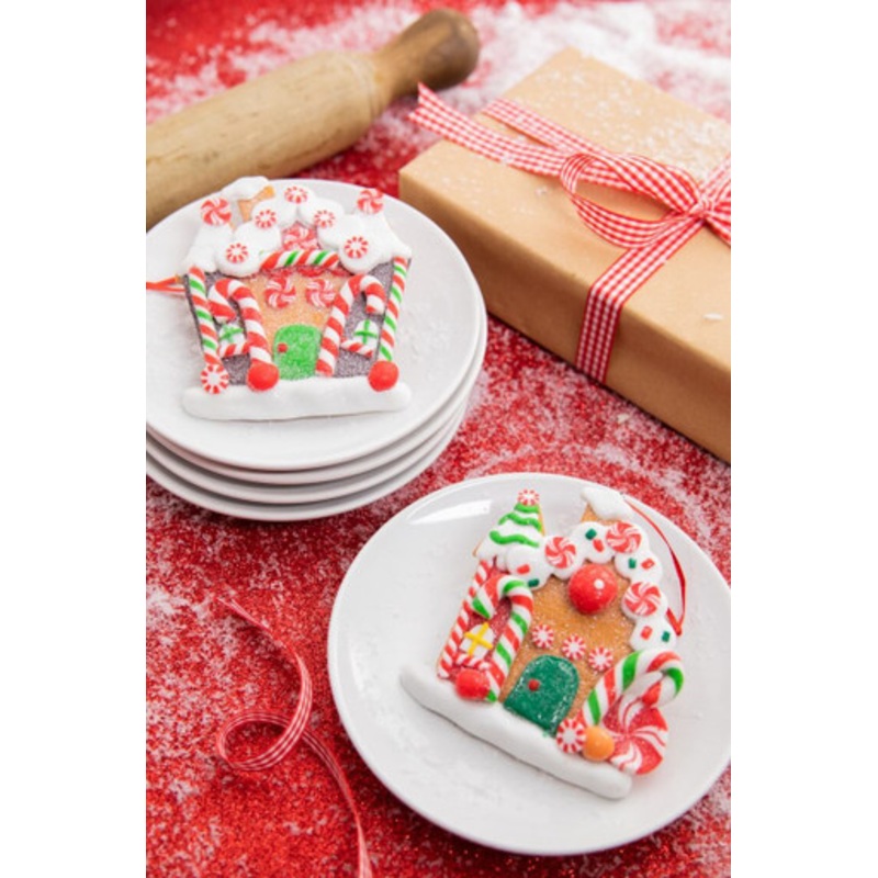 Make this holiday season even more magical with our 4.5" Gingerbread Candy House Ornament! This whimsical ornament is filled with the sweetest of details, including peppermints, candy canes, gumdrops, and a frosted gingerbread roof. Add this festive and fu