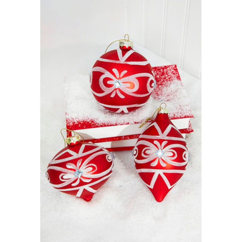 Transform your tree with the 4" Red and White Swirl Glass Ornament a perfect blend of elegance and fun. Available in drop, ball, and onion shape, the ornament's rhinestone detail adds a touch of glitz sure to impress. The vibrant red base with a white swir