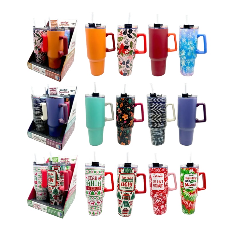 Elevate your beverage game with our 40oz Insulated Fall and Winter Cups! The coolest way to show your seasonal spirits. This copper-insulated, vacuum-sealed stainless-steel cup keeps drinks cold for 18 hours and hot for 7 hours. Includes a straw and spill-