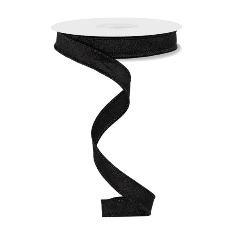 A roll of solid black shimmery fine glitter ribbon. 5/8" x 10YDs, wired. Great ribbon for Halloween bows and accents!