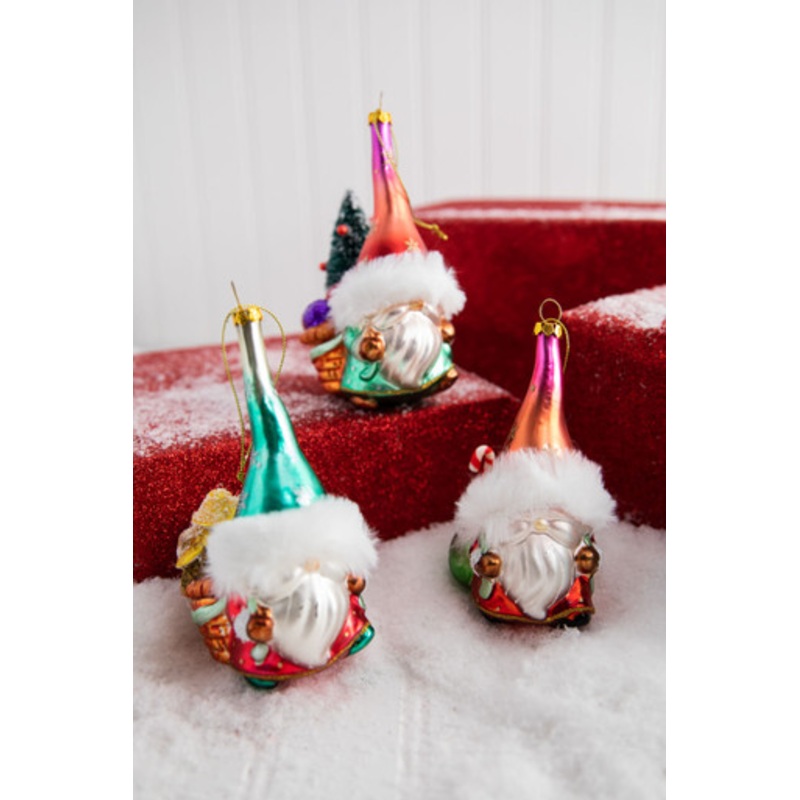 This 5 glass gnome ornament is undeniably adorable and will bring some whimsical fun to your gnome themed decorations this holiday season. Choose from two options, each with vibrant colors and fur-trimmed hats, and youll be sure to bring some silliness and wonder to your tree this holiday. From carrying mushrooms in their sack to a bag full of presents, this ornament will be cherished for years to come due to its quirky and cute detail. ***Please note: Not sold as a set unless the ‘BUY SET’ option is chosen.