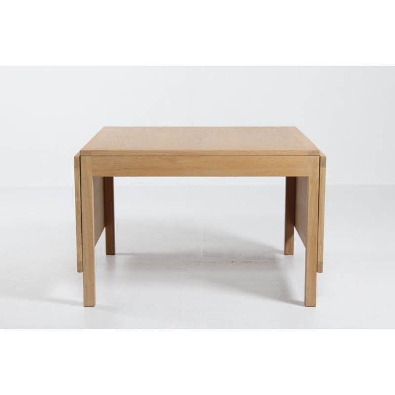 Coffee table model no. 5362 with 2 drop-down leafs designed by Brge Mogensen (1914-1972) in the 1960s and manufactured in Denmark by Fredericia Stolefabrik. This edition is made of untreated solid and veneered oak.Height 54 cm Length 84 cmLength when full