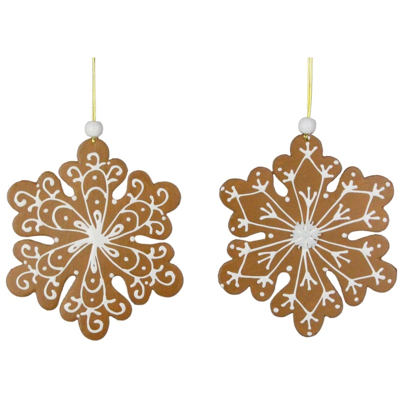 6.5" Gingerbread snowflake ornaments, sold individually. You will receive one of the ornaments pictured. Made of foam.