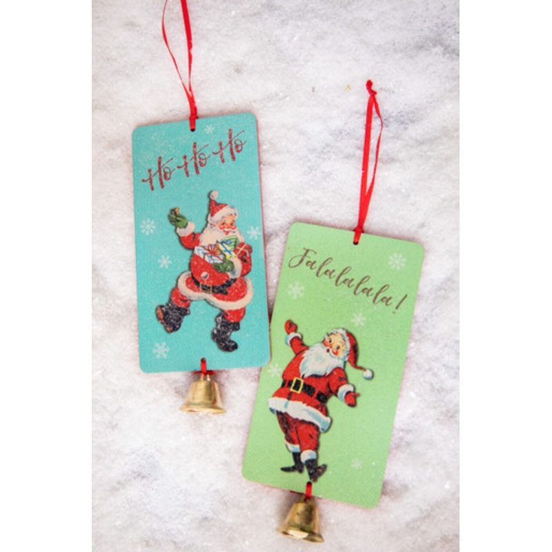 Celebrate the holidays with this festive 6.5 Retro Santa Ornament with Bell. Choose from two cheerful phrases, "Ho Ho Ho" or "Fa La La La La", and admire the soft retro colors. Each ornament has a beautiful bell detail, perfect for adding a vintage touch t