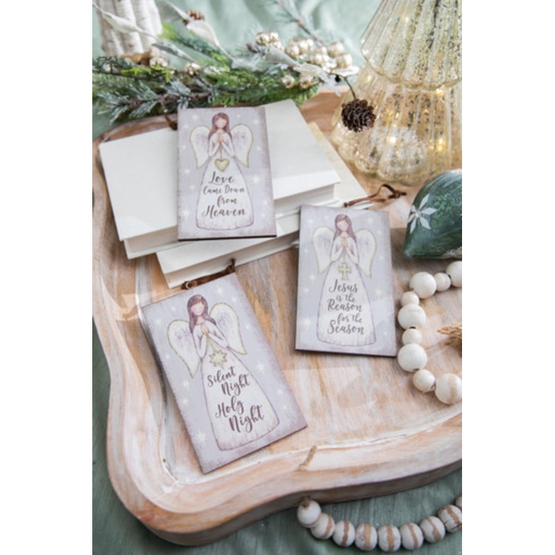 Bring a touch of rustic charm to your holiday decor with this unique 6" Angel Plaque Ornament. Choose from three beautiful options in neutral tones to add a bit of subtle sparkle to your Christmas decorations. Each option features a special angel on a plaq