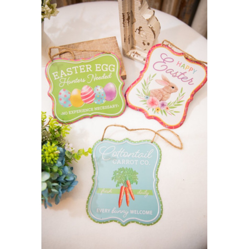 These delightful tin Easter signs are the cutest addition to your wreath or Easter seasonal tree decor design! Each sign features unique embossed details, showcasing intricate Easter-themed motifs that add a whimsical and nostalgic vibe to your space. Whet