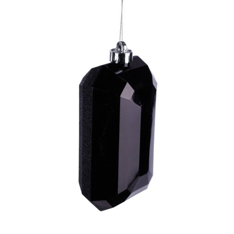 7" x 4" Black rectangular shaped gem ornament with black glitter backing. Get that WOW factor from your tree or wreath with these over the top shatterproof precious gem ornaments!