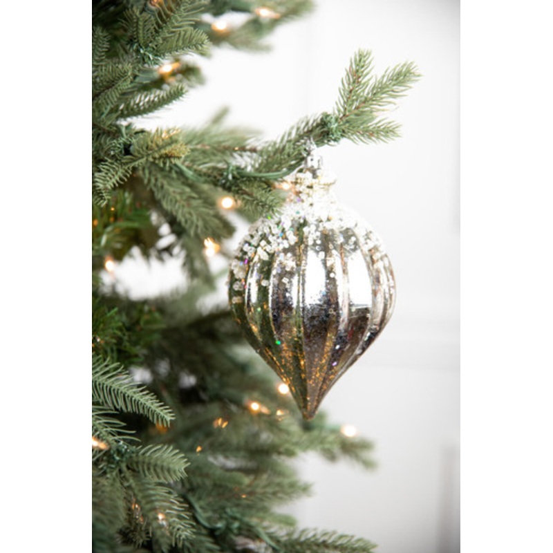 Put some extra sparkle into your holiday season with this beautiful 7" metallic ridged iced kismet finial ornament. This stylish ornament features a champagne color with intricate details, giving your tree a one-of-a-kind look. Easy to hang and perfect for