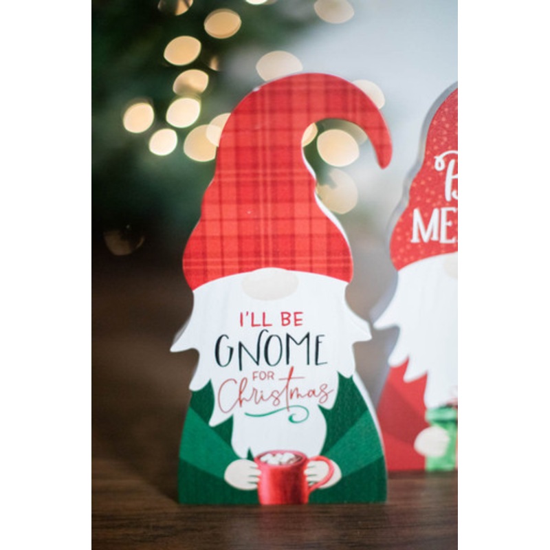 Incorporate a nod to the traditional European characters who have been known to help around the house, even making the nightly hot cocoa a time or two! His cap and "I'll be gnome for Christmas!" saying bring festive fun to any display scene.