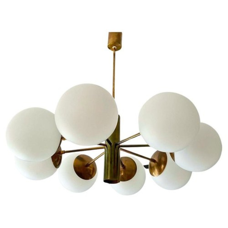 Beautiful Sputnik chandelier with 8 arms. Its body is in lovely vintage condition, while the shades have remained in their original packaging since the first purchase, keeping them in perfect condition. A decorative piece. Design Period 1960 to 1969 Year 1