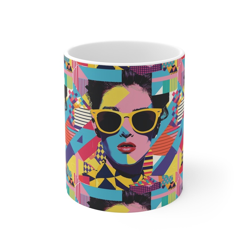 Keywords: 80s coffee mug, retro mug, nostalgia gift, vintage style mug, pop culture mug, ceramic coffee cup, 80s themed gift, unique coffee mug, colorful mug, funky home decor