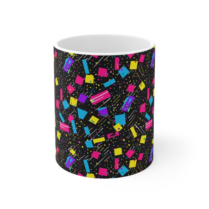 Keywords: 80s coffee mug, retro mug, nostalgia gift, vintage style mug, pop culture mug, ceramic coffee cup, 80s themed gift, unique coffee mug, colorful mug, funky home decor