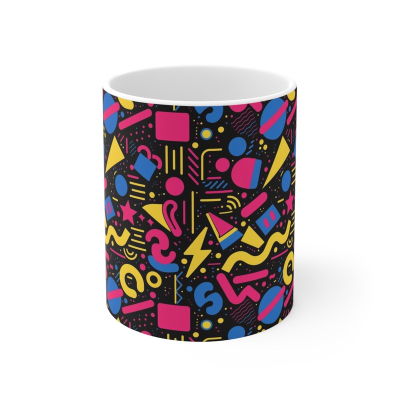 Keywords: 80s coffee mug, retro mug, nostalgia gift, vintage style mug, pop culture mug, ceramic coffee cup, 80s themed gift, unique coffee mug, colorful mug, funky home decor
