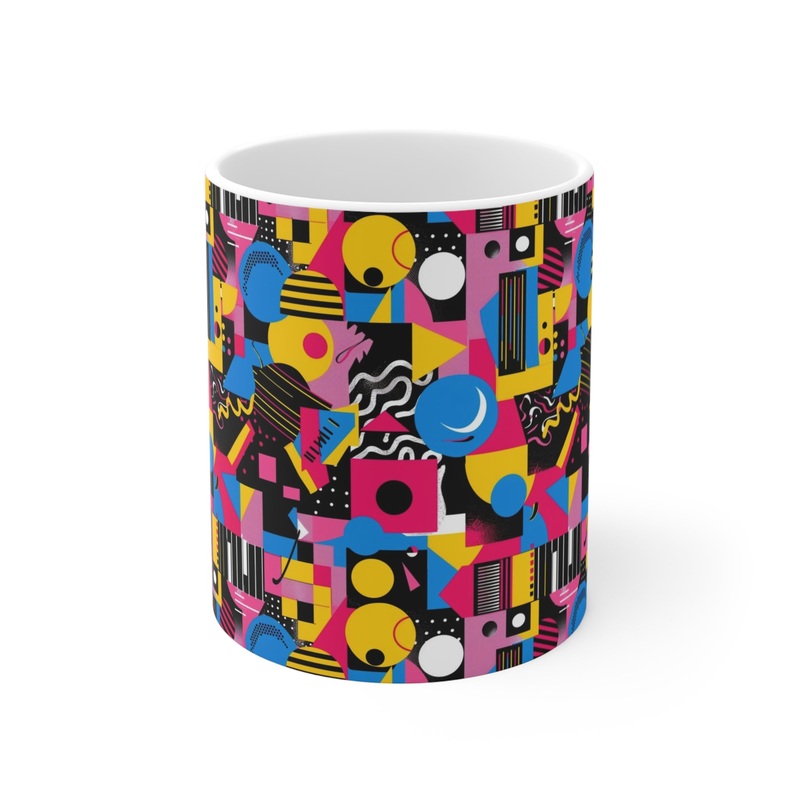 Keywords: 80s coffee mug, retro mug, nostalgia gift, vintage style mug, pop culture mug, ceramic coffee cup, 80s themed gift, unique coffee mug, colorful mug, funky home decor