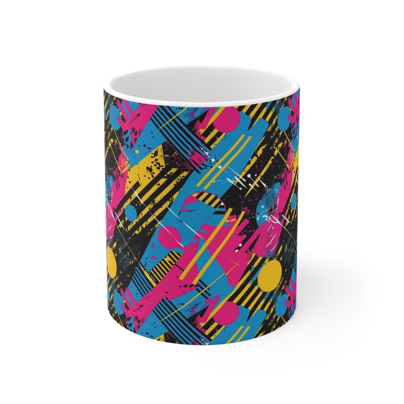 Keywords: 80s coffee mug, retro mug, nostalgia gift, vintage style mug, pop culture mug, ceramic coffee cup, 80s themed gift, unique coffee mug, colorful mug, funky home decor