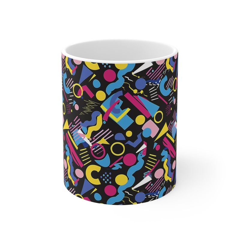 Keywords: 80s coffee mug, retro mug, nostalgia gift, vintage style mug, pop culture mug, ceramic coffee cup, 80s themed gift, unique coffee mug, colorful mug, funky home decor