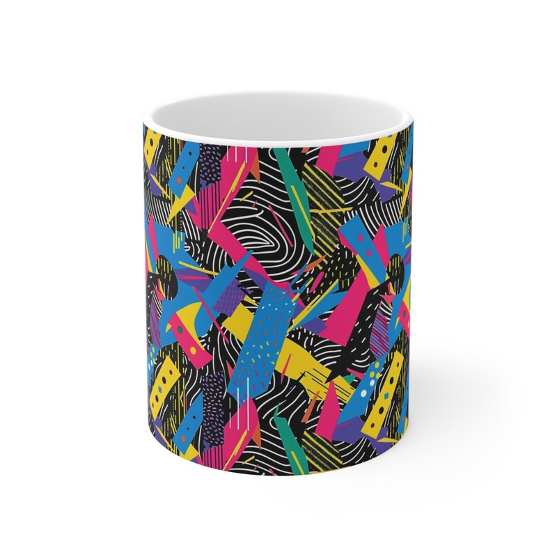 Keywords: 80s coffee mug, retro mug, nostalgia gift, vintage style mug, pop culture mug, ceramic coffee cup, 80s themed gift, unique coffee mug, colorful mug, funky home decor