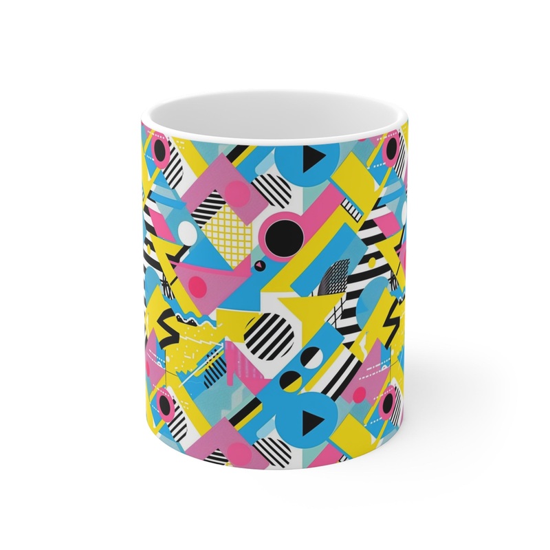 Keywords: 80s coffee mug, retro mug, nostalgia gift, vintage style mug, pop culture mug, ceramic coffee cup, 80s themed gift, unique coffee mug, colorful mug, funky home decor