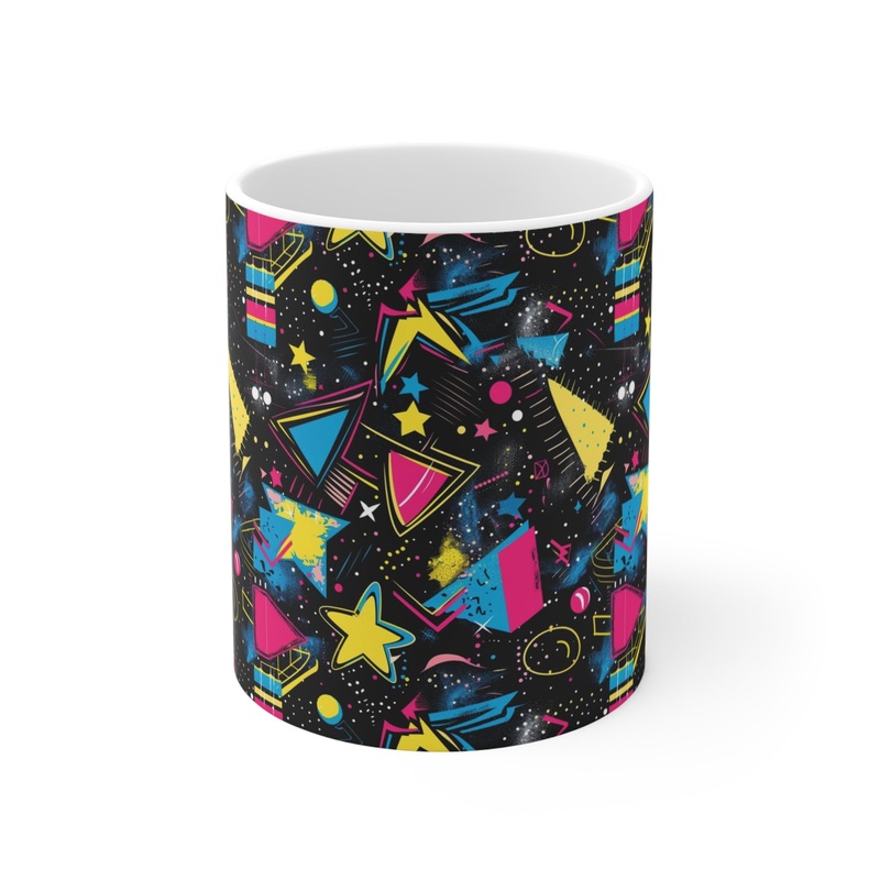 Keywords: 80s coffee mug, retro mug, nostalgia gift, vintage style mug, pop culture mug, ceramic coffee cup, 80s themed gift, unique coffee mug, colorful mug, funky home decor