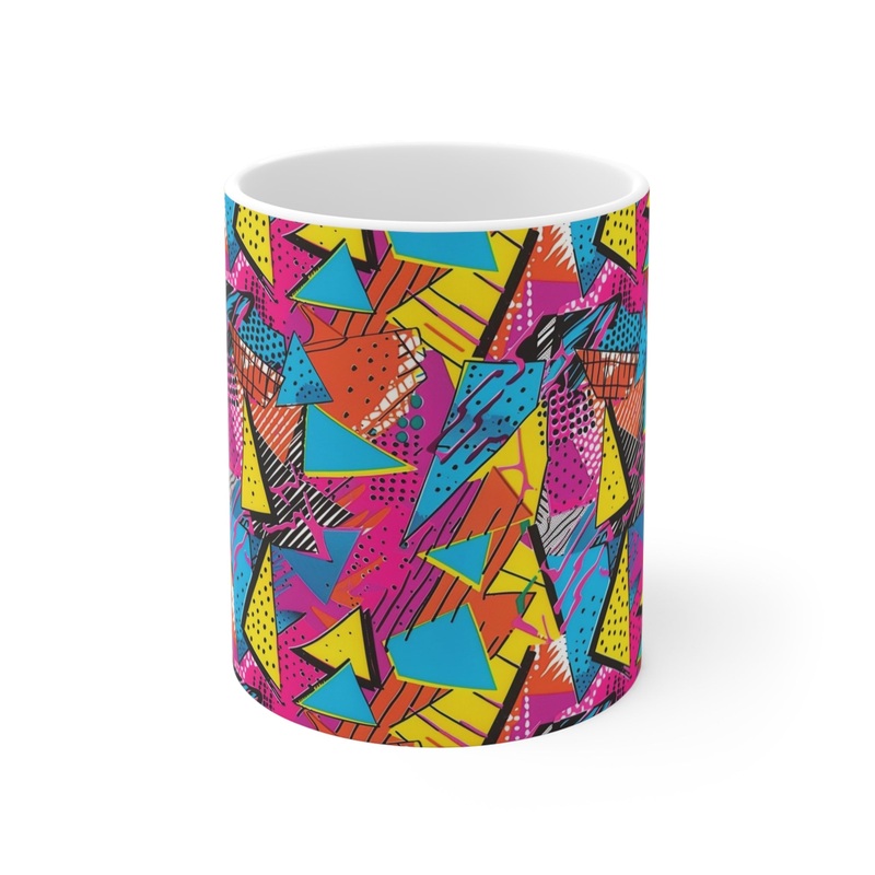 Keywords: 80s coffee mug, retro mug, nostalgia gift, vintage style mug, pop culture mug, ceramic coffee cup, 80s themed gift, unique coffee mug, colorful mug, funky home decor