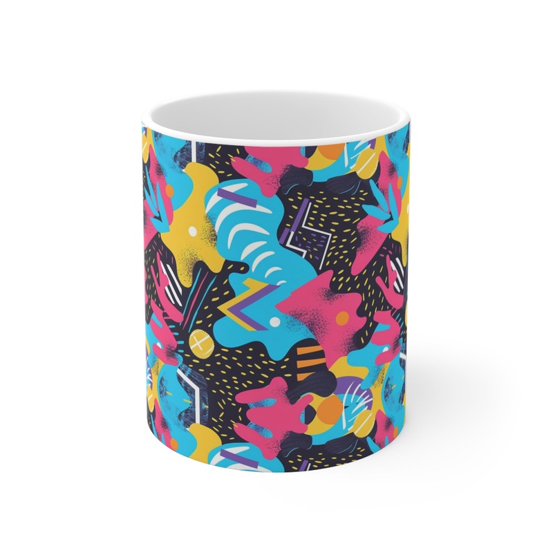 Keywords: 80s coffee mug, retro mug, nostalgia gift, vintage style mug, pop culture mug, ceramic coffee cup, 80s themed gift, unique coffee mug, colorful mug, funky home decor