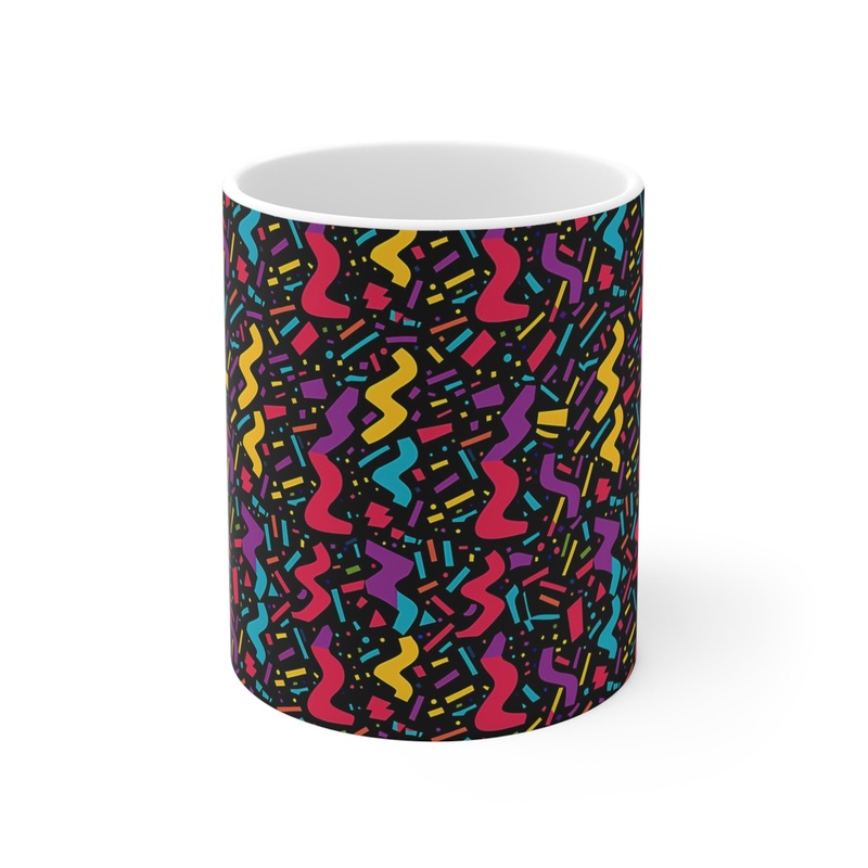 Keywords: 80s coffee mug, retro mug, nostalgia gift, vintage style mug, pop culture mug, ceramic coffee cup, 80s themed gift, unique coffee mug, colorful mug, funky home decor