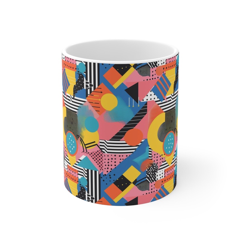 Keywords: 80s coffee mug, retro mug, nostalgia gift, vintage style mug, pop culture mug, ceramic coffee cup, 80s themed gift, unique coffee mug, colorful mug, funky home decor