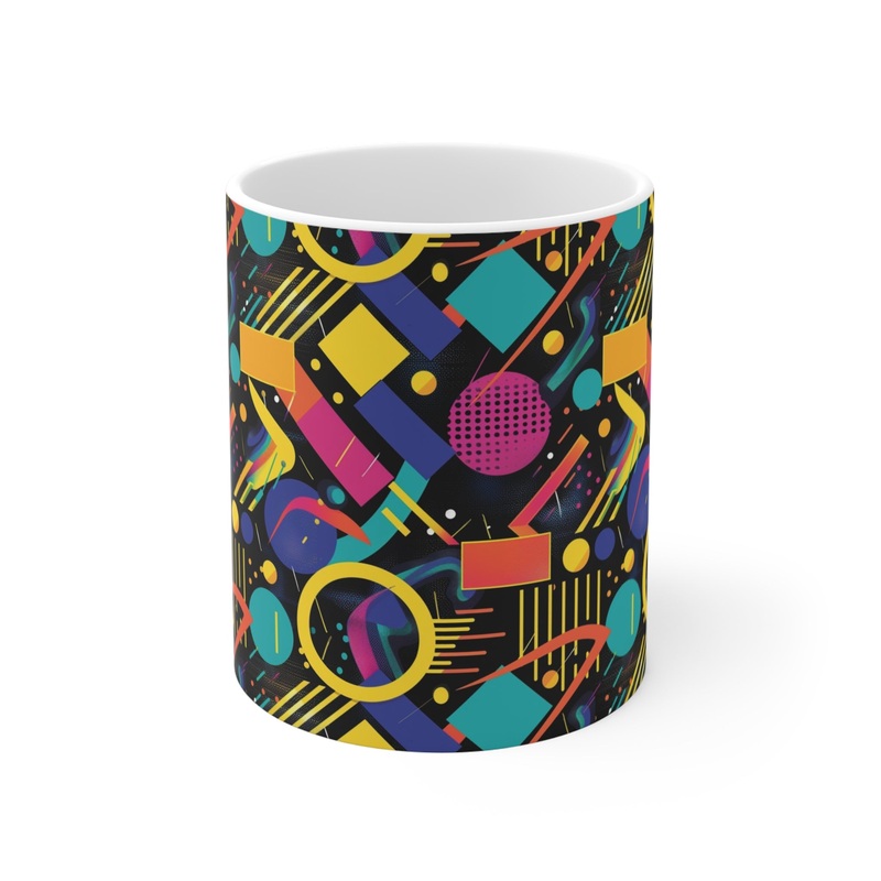 Keywords: 80s coffee mug, retro mug, nostalgia gift, vintage style mug, pop culture mug, ceramic coffee cup, 80s themed gift, unique coffee mug, colorful mug, funky home decor