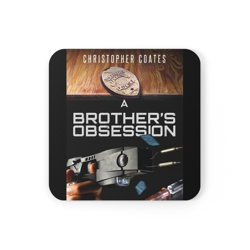 These coasters are made with a high-gloss top and feature a cork back to prevent sliding, and each order comes with a set of four coasters. The cover art in these coasters is from Christopher Coates’s book, A Brother’s Obsession.