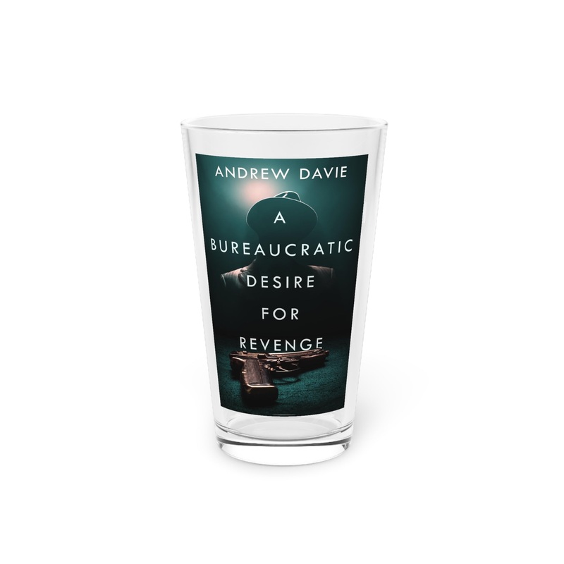 Nothing can replace a pint glass except for another pint glass. These long and transparent glasses are highly versatile, can make for a great housewarming gift, and are bound to be used in any household. The cover art on this pint glass is from Andrew Davie’s book, A Bureaucratic Desire For Revenge.