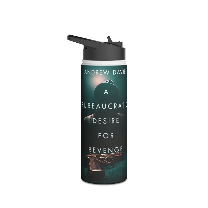 Quench your thirst in style with this 18oz stainless steel water bottle featuring a double-wall stainless steel build that keeps your drinks frosty for 24h and soothingly hot for 12h. This BPA-free, steel water bottle comes with a twist-on lid for easy sipping, making it excellent for daily use at work, at college, in the car, and beyond. The cover art in this water bottle is from Andrew Davie’s book, A Bureaucratic Desire For Revenge.
