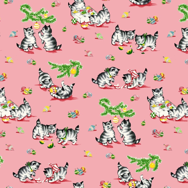 A Kitty for Christmas Kitties and Garland in Pink designed by Hannah West for Henry Glass 44 inches wide 100% Cotton Quilting Fabric HG-1984-22Celebrate the holidays with the adorable A Kitty for Christmas fabric collection by Hannah West for Henry Glass.