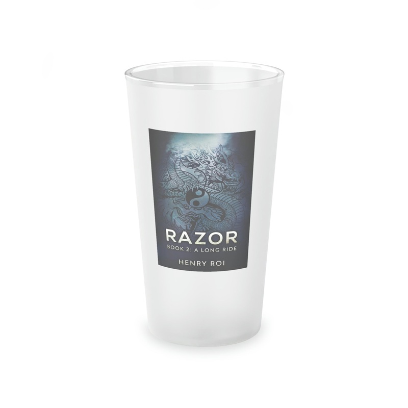 This frosted matte finish pint glass is versatile and dishwasher-safe. The cover art in this pint glass is from Henry Roi's book, A Long Ride.