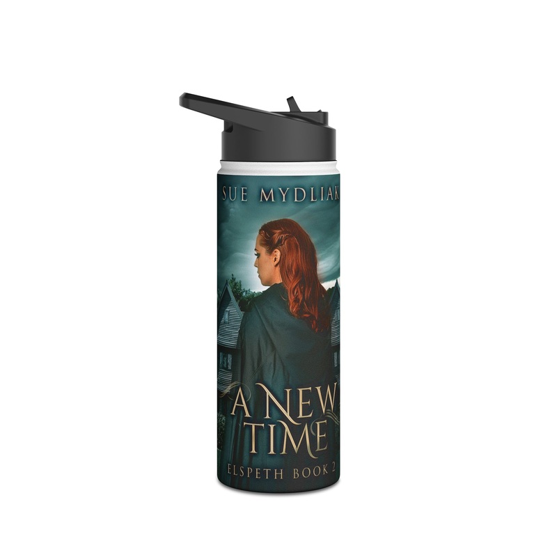 Quench your thirst in style with this 18oz stainless steel water bottle featuring a double-wall stainless steel build that keeps your drinks frosty for 24h and soothingly hot for 12h. This BPA-free, steel water bottle comes with a twist-on lid for easy sipping, making it excellent for daily use at work, at college, in the car, and beyond. The cover art in this water bottle is from Sue Mydliak’s book, A New Time.