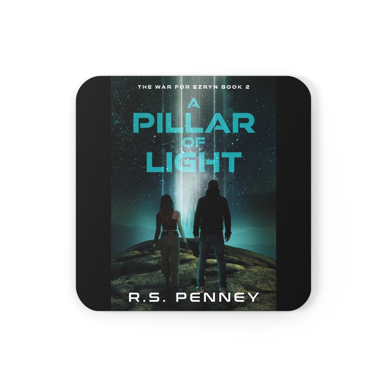 These coasters are made with a high-gloss top and feature a cork back to prevent sliding, and each order comes with a set of four coasters. The cover art in these coasters is from R.S. Penney’s book, A Pillar Of Light.