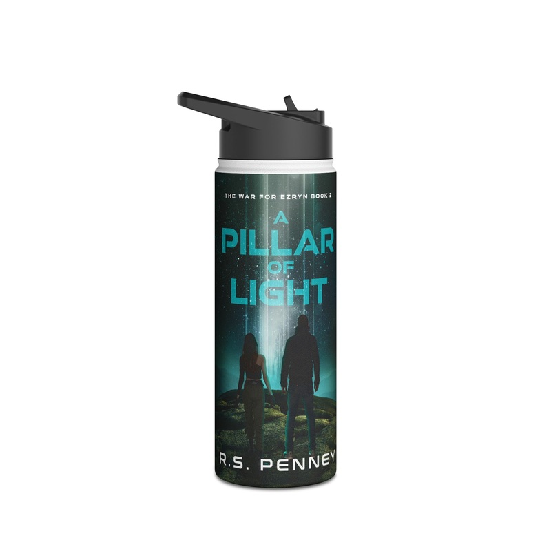 Quench your thirst in style with this 18oz stainless steel water bottle featuring a double-wall stainless steel build that keeps your drinks frosty for 24h and soothingly hot for 12h. This BPA-free, steel water bottle comes with a twist-on lid for easy sipping, making it excellent for daily use at work, at college, in the car, and beyond. The cover art in this water bottle is from R.S. Penney’s book, A Pillar Of Light.