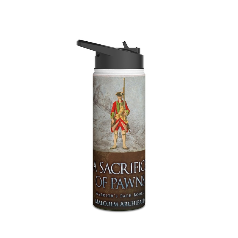 Quench your thirst in style with this 18oz stainless steel water bottle featuring a double-wall stainless steel build that keeps your drinks frosty for 24h and soothingly hot for 12h. This BPA-free, steel water bottle comes with a twist-on lid for easy sipping, making it excellent for daily use at work, at college, in the car, and beyond. The cover art in this water bottle is from Malcolm Archibald’s book, A Sacrifice of Pawns.