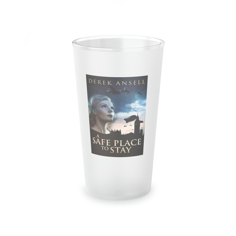 This frosted matte finish pint glass is versatile and dishwasher-safe. The cover art in this pint glass is from Derek Ansell's book, A Safe Place To Stay.