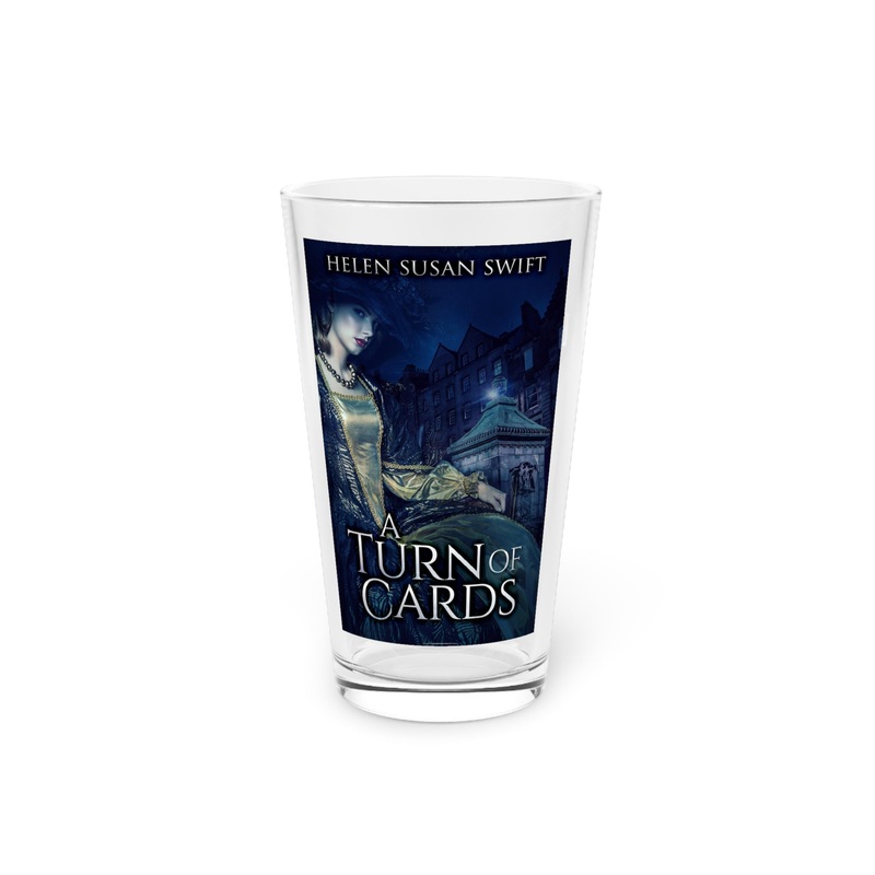 Nothing can replace a pint glass except for another pint glass. These long and transparent glasses are highly versatile, can make for a great housewarming gift, and are bound to be used in any household. The cover art on this pint glass is from Helen Susan Swift’s book, A Turn of Cards.