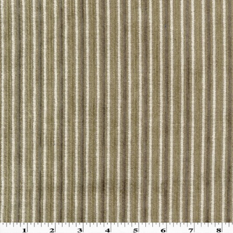 -Multi-colored velvet-like chenille stripe woven fabric-Polyester/Cotton-Width: 56"-Polycoated back for stability-Weight: Heavy-Transparency: Opaque-Hand: Textured-Stretch: No Stretch-Drape: Little Drape-Luster: Low Luster-End Uses: Headboards, Couches, So