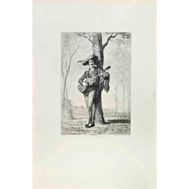 Le Guitariste is an artwork realized by Auguste Feyen Perrin in the 1870s. Etching. Image size:30x20. Good conditions. Realized for the "Socit des Aquafortistes. Born on the initiative of the publisher Alfred Cadart, the Socit des Aquafortistes had the aim