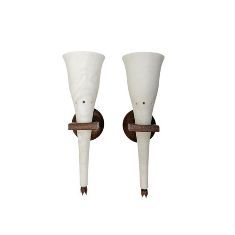 A set of Mid Century large Italian Wall Lights in the shape of a torch.