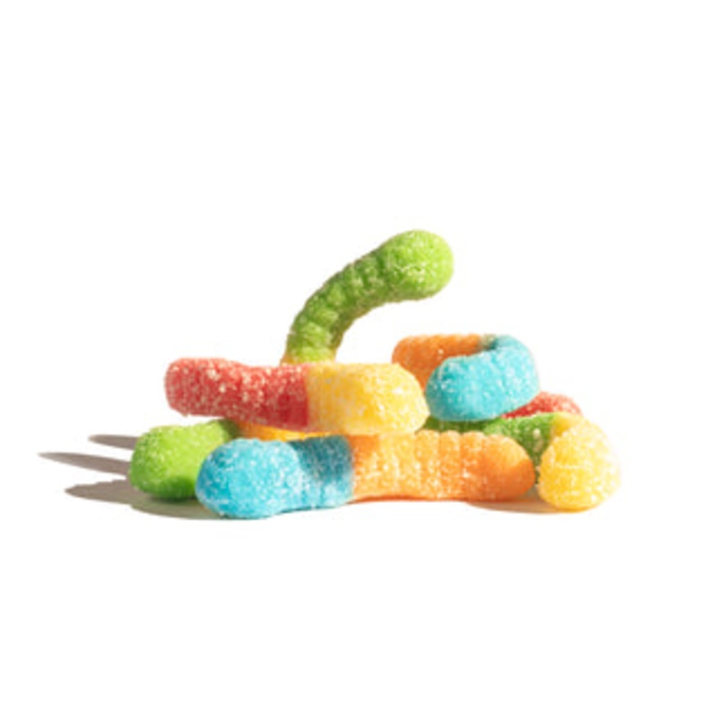 Pucker up for a sour take on our sweet Gummi Worms. Each Sour Mini Gummi Worm is dusted with a sour coating giving it a tart bite. Flavors include Blue Raspberry, Lemon, Orange, Cherry, and Green Apple.