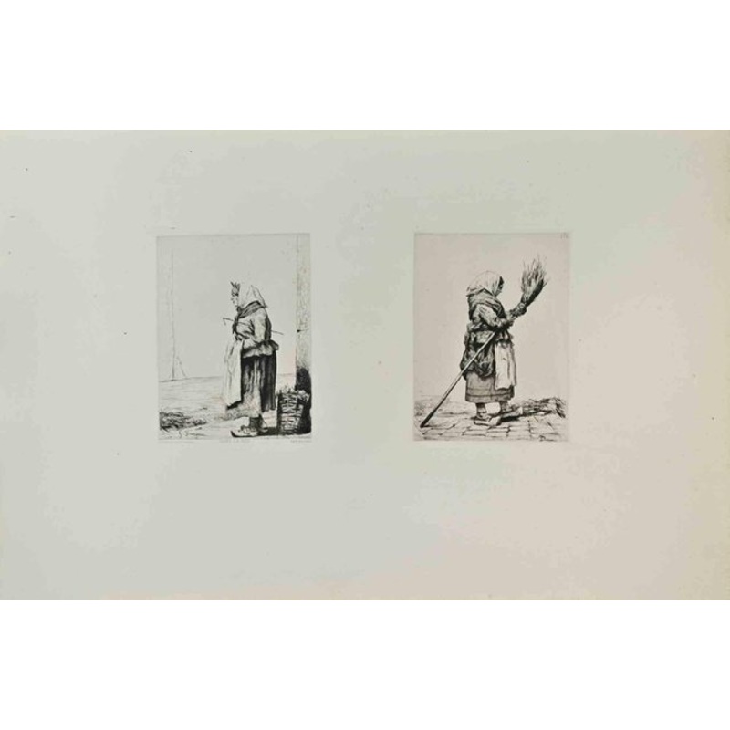 Dans la Rue is an artwork realized by Alfred Cadart in the 1870s. Etching. Image size:16x12 and 16x12 Good conditions. Realized for the "Socit des Aquafortistes. Born on the initiative of the publisher Alfred Cadart, the Socit des Aquafortistes had the aim