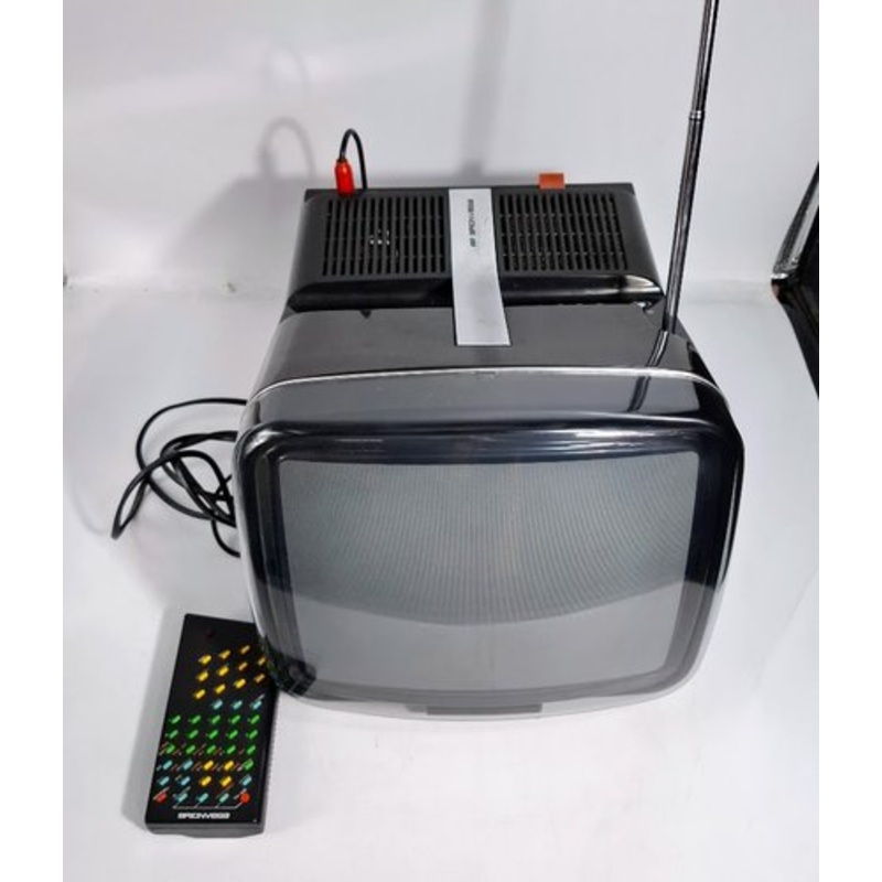 Here is the iconic Italian design of the Brionvega ALGOL TVC 11″, a vintage gem from the 1980s. This TV is among the first color televisions produced by Brionvega, showcasing their revolutionary technology and elegant design. The TV is available in classic black color, adding a touch of elegance to any vintage decor. In addition to its retro charm, this TV is in excellent condition and fully functional, making it a must-have for collectors and design enthusiasts. Complete with remote control, the Brionvega ALGOL TVC 11″ will bring a touch of vintage class to any home.