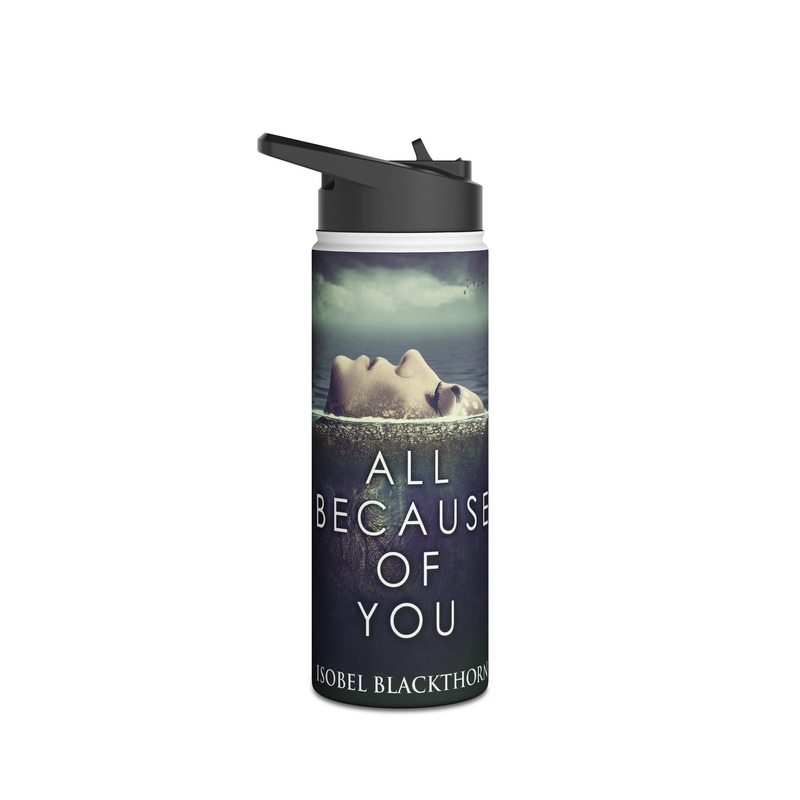 Quench your thirst in style with this 18oz stainless steel water bottle featuring a double-wall stainless steel build that keeps your drinks frosty for 24h and soothingly hot for 12h. This BPA-free, steel water bottle comes with a twist-on lid for easy sipping, making it excellent for daily use at work, at college, in the car, and beyond. The cover art in this water bottle is from Isobel Blackthorn’s book, All Because Of You.