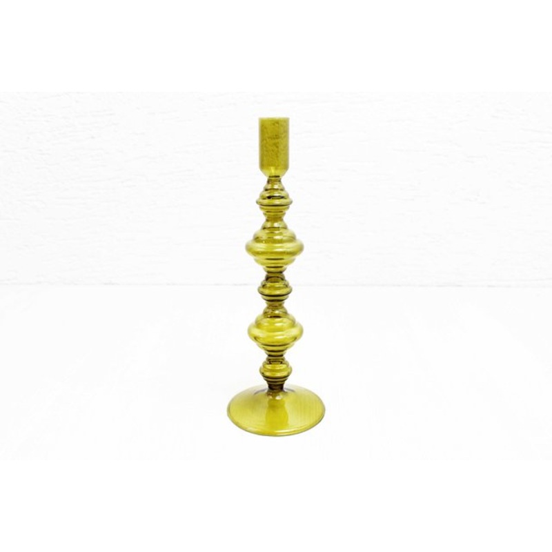 Very fine vintage amber glass candle holder.with its little transition, this candle holder offers a pretty design to accommodate a standard daimeter candle.It will find its place simply as a decoration on a sideboard or on a side table.Dimensions:Height 26