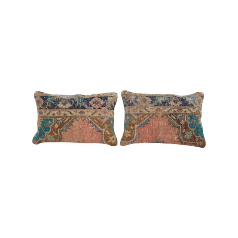 " Handmade Turkish Rug Pillow Covers Vintage Rug Decor Elevate your home decor with these exquisite 16"" x 24"" pillow covers crafted from authentic vintage Turkish rugs, handwoven in the 1960s. The rich and vibrant woolen colors on the front of each pillo